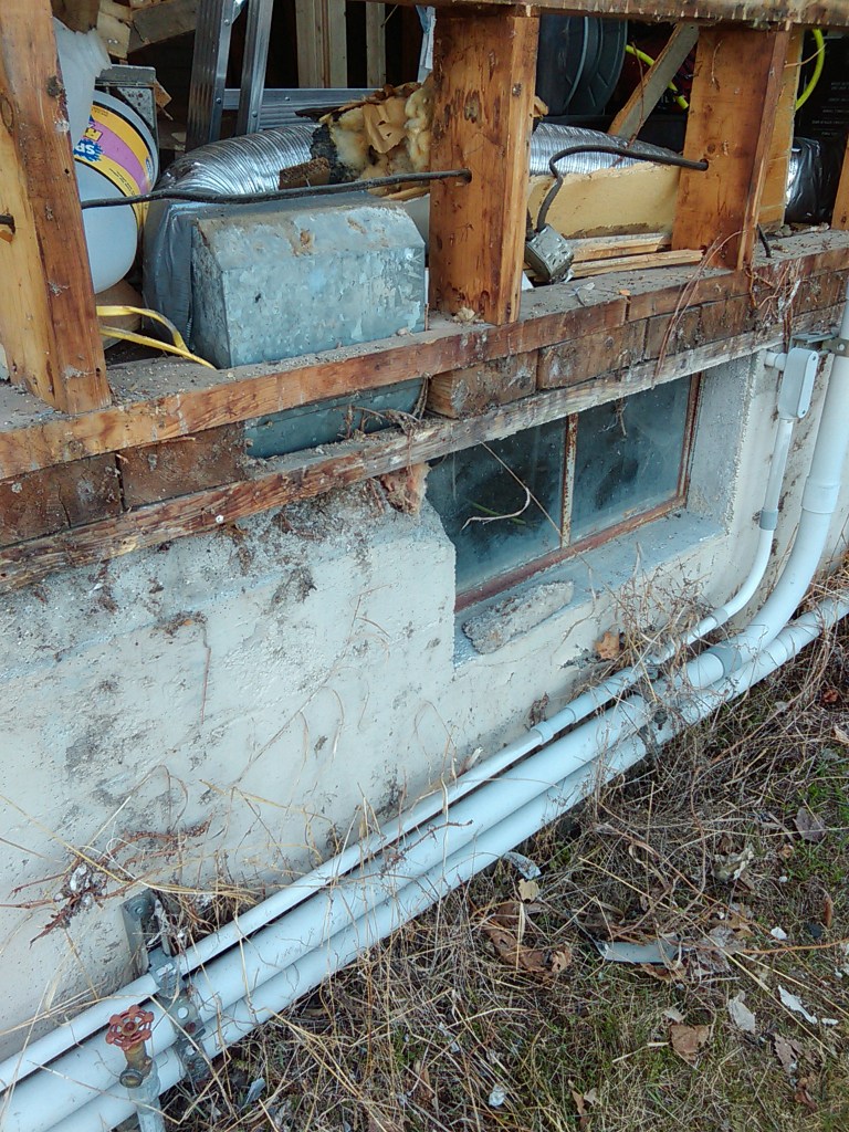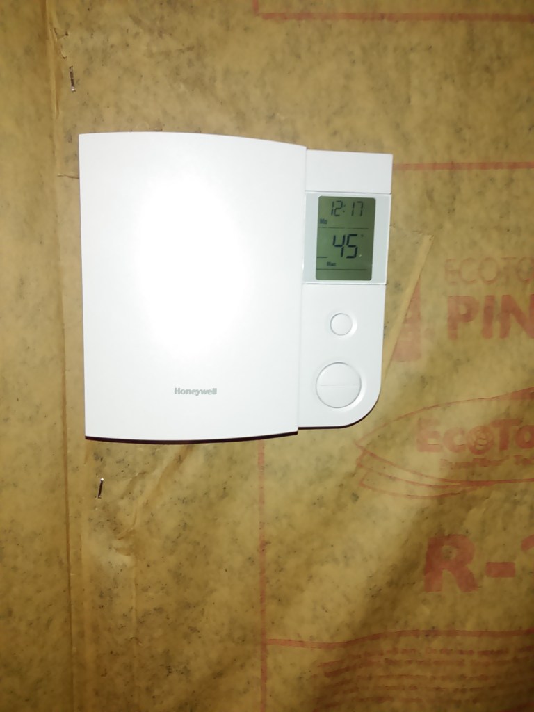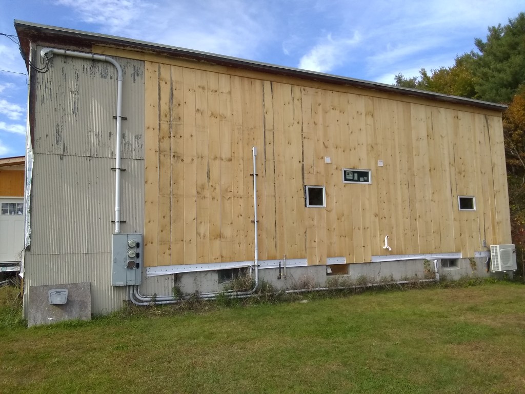 First I needed to side the rear of the building where the unit would be located so that all of the plumbing for it could go through the siding. On the interior sheet rock needed to be hung where the unit would be mounted. So both inside and outside, we did the bare minimum to allow the thing to be installed. Outof site and in the crawlspace I ran 1/2″ metal conduit and wire to where it would be located outside to save a bit of money on the installation, which was done by professionals that have to be approved by Vermont to get the refund. We went with Maple Leaf Mechanical, located right here in Fair Haven- just down the street actually. They were a young crew and did a great job before, during, and after the install. Made sure to stop by and walk me through how to use all the controls after the install. Good folks.