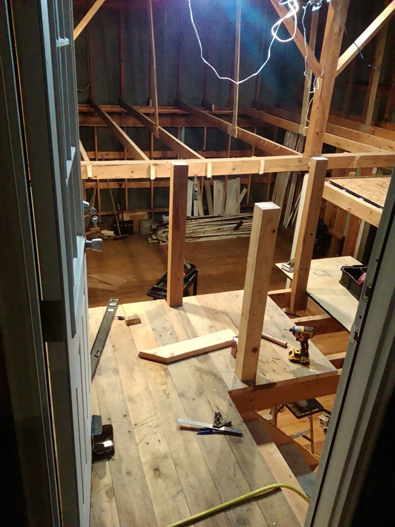 During this period we got out all of the old attic flooring, put in the new door near where the loft area would be, and got most of the loft area in place.