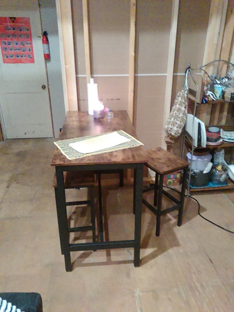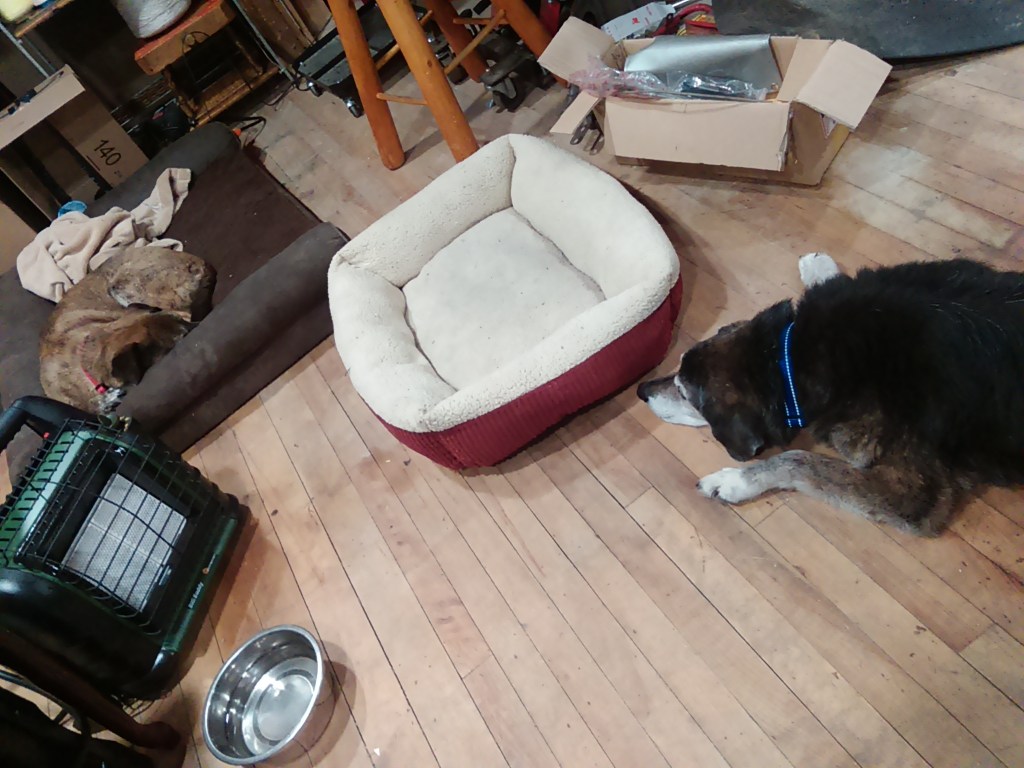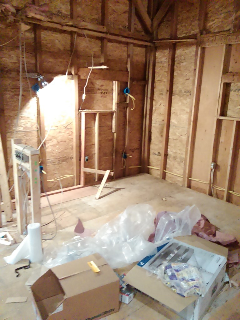 And after what I think was a near-miss with carbon monoxide poisoning in the office area (who know propane heaters were rated outdoor use only?) I finally got some electric heat hooked up in my new office space: