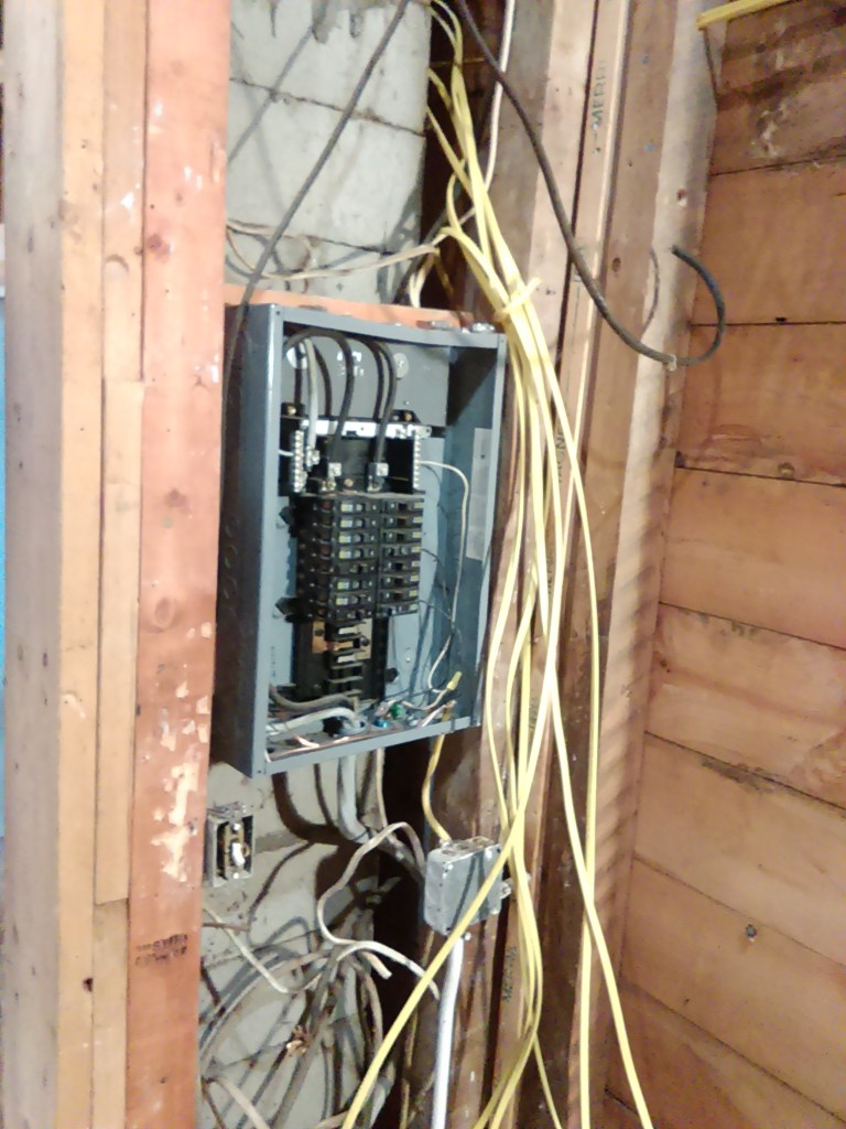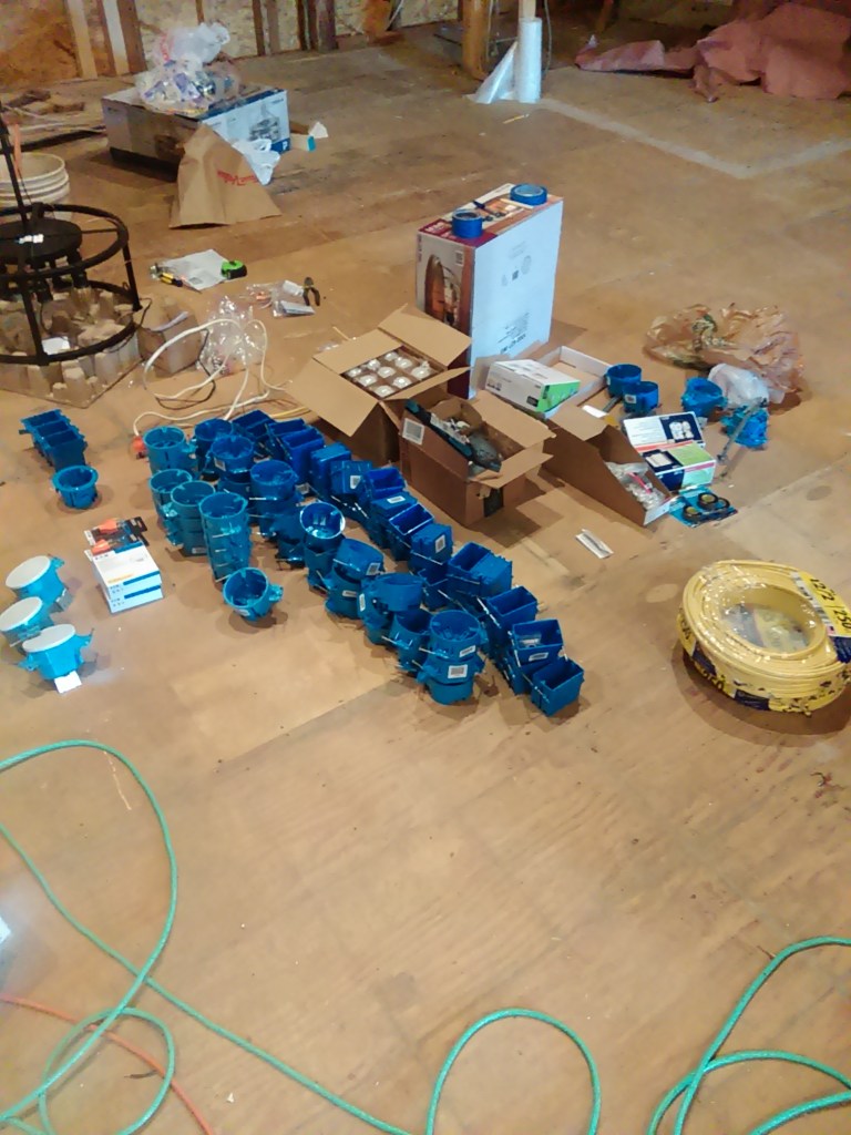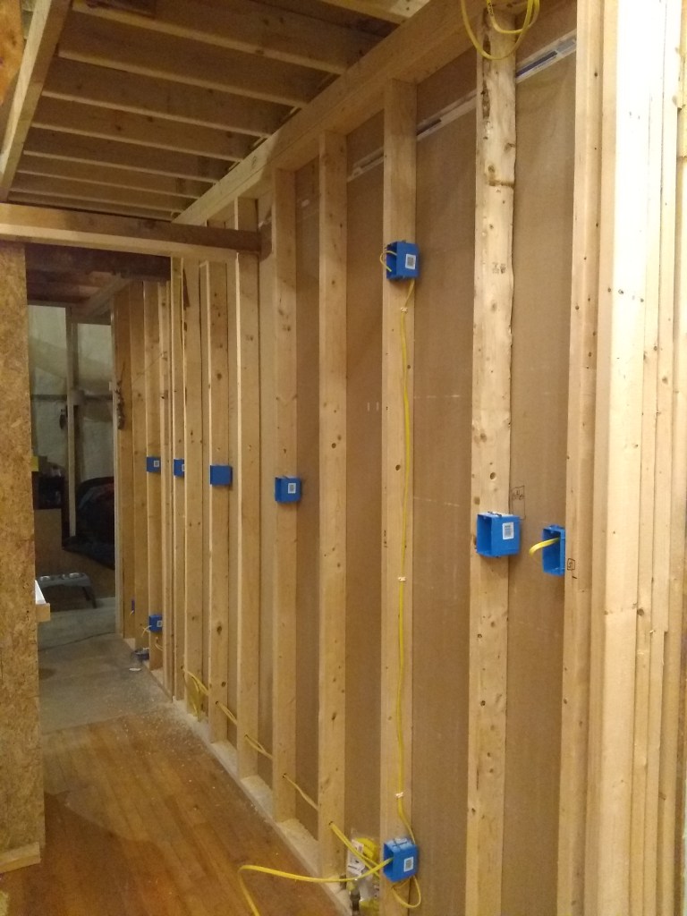 All of the old wiring was completely disconnected. The only wire that was in there previously that will be reused is the basement light switch and one outlet there. All of the rest of the wiring has been completely re-run. It’s not yet installed into the panel or wired up at all the boxes, but it’s all pulled to the locations it needs to be in.