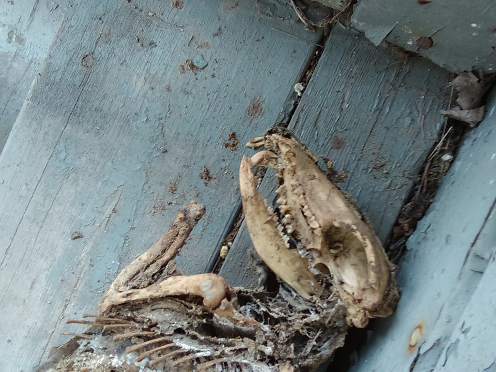 I had to clean out underneath an overhang at the front of the building so they could spray foam underneath. I saw something that I thought was an old towel or something. After brushing it off I could tell it wasn’t a towel…