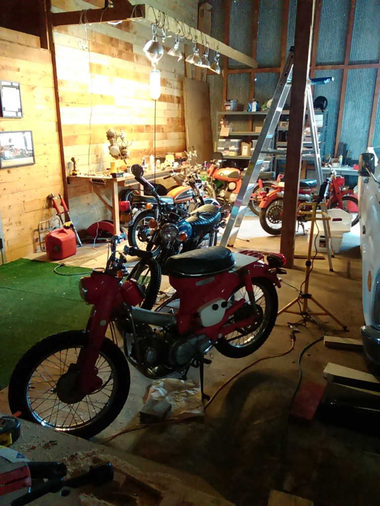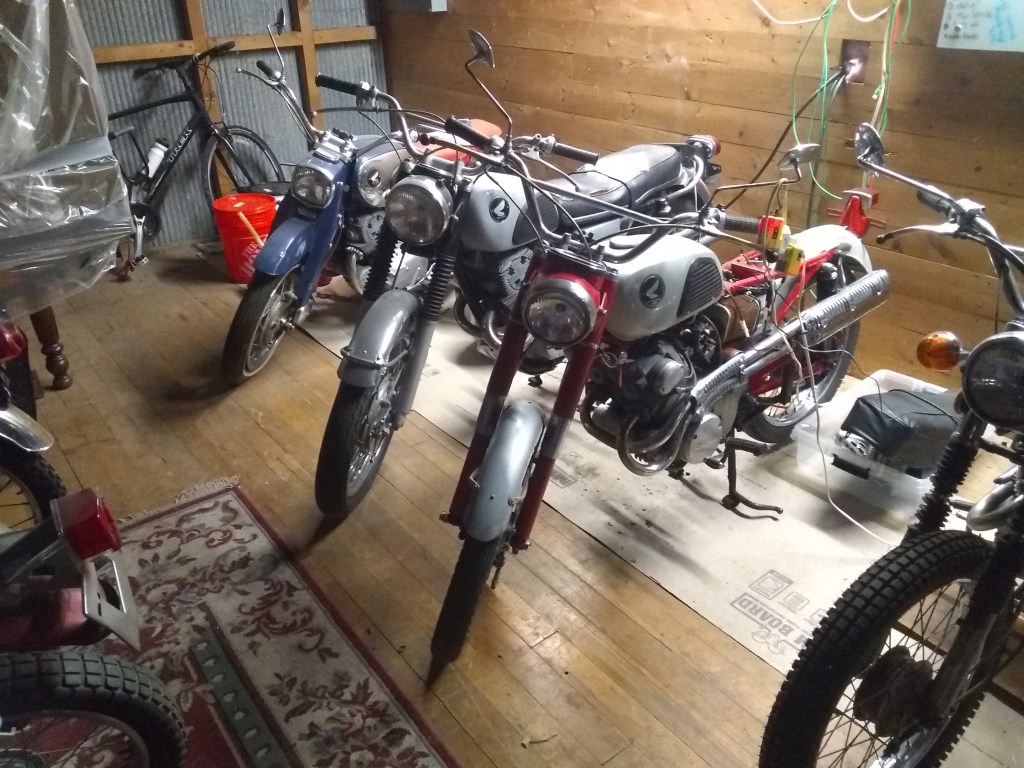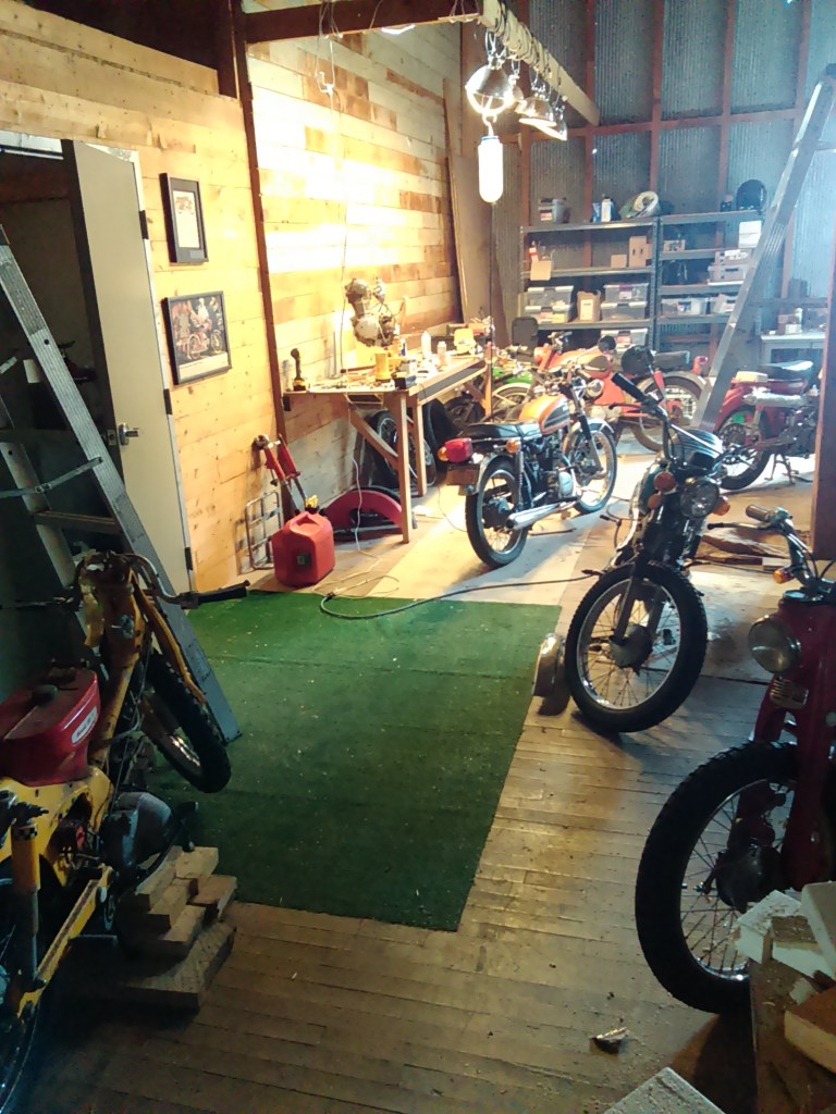 I spent a little time moving some bikes around in the warehouse and lining them up. There were a lot just kind of scattered randomly about. Here is a sample (yeah, there’s def more than this… and, yes, its a sickness…) :
