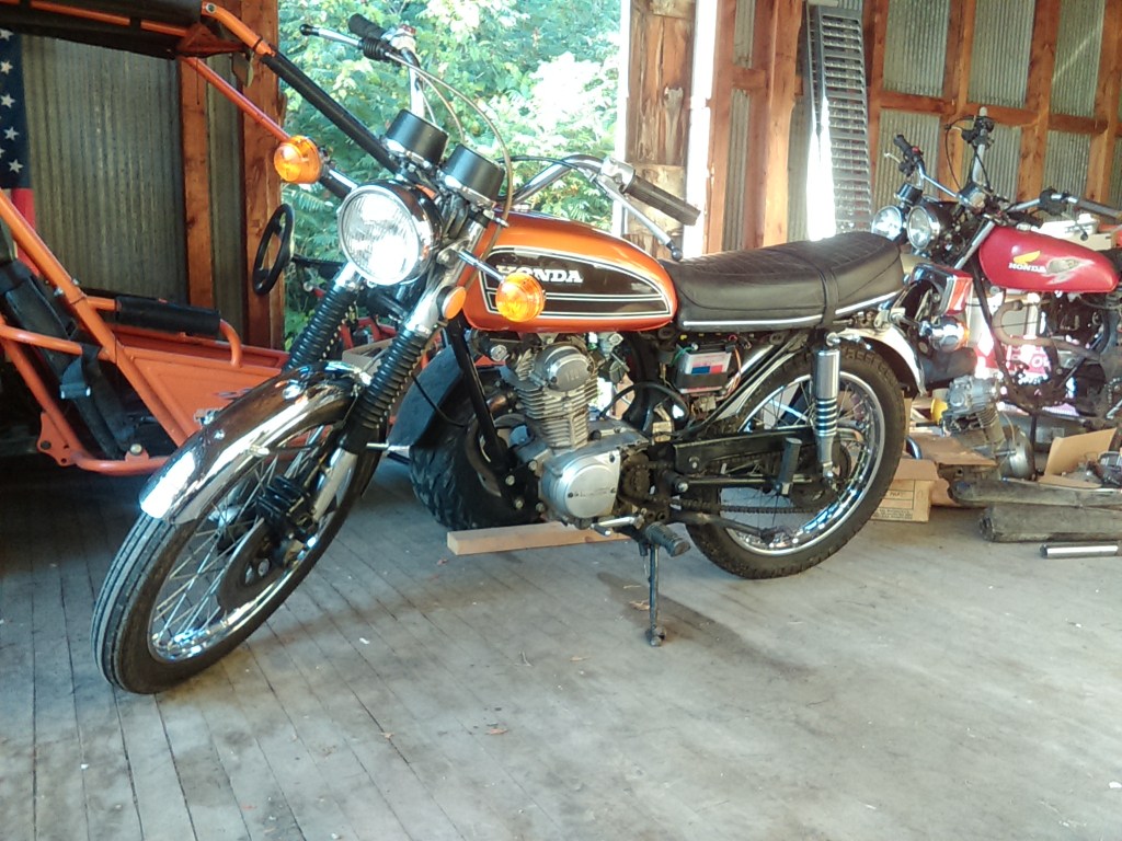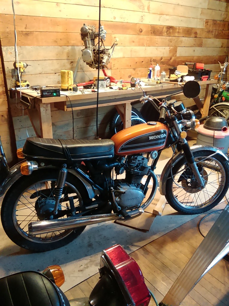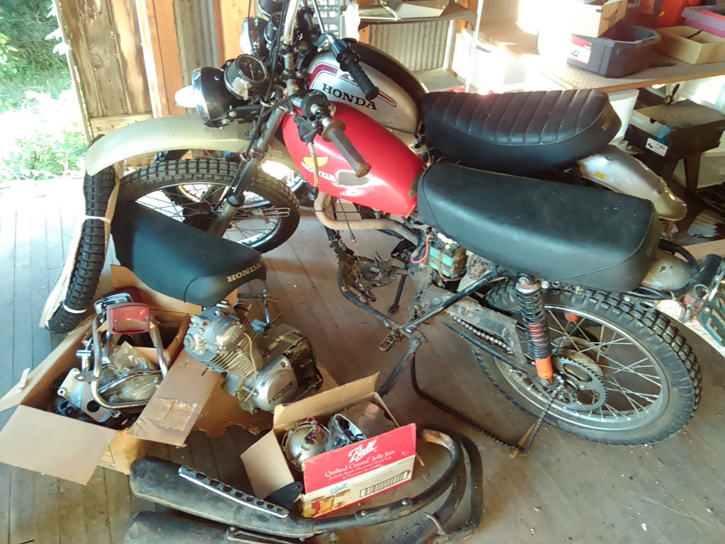And in other news, got that CT90 running and out for a test run. “Old Yell’r”. Old tires and no brakes!