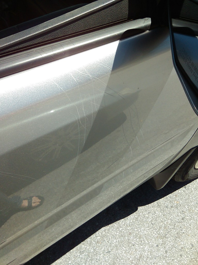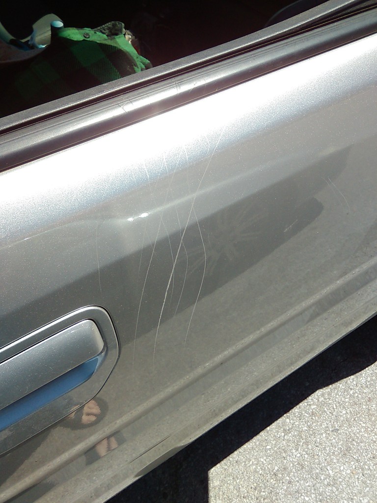 Unfortunately this sweet little pup got a little too interested in the contents of my truck one day when I left the windows down and it scratched up all of my truck doors. Doggy is now banned.