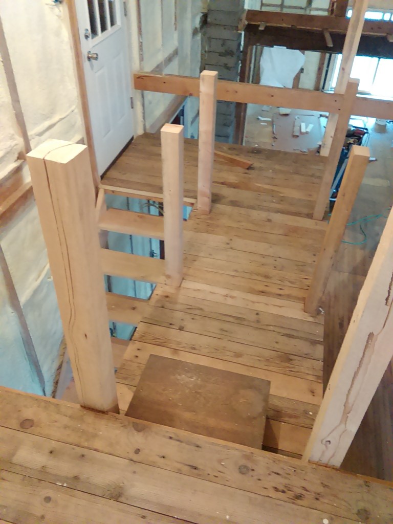 From start to finish- adding stairs and new door landing area for going between the loft area in the house over to the loft area of the warehouse: