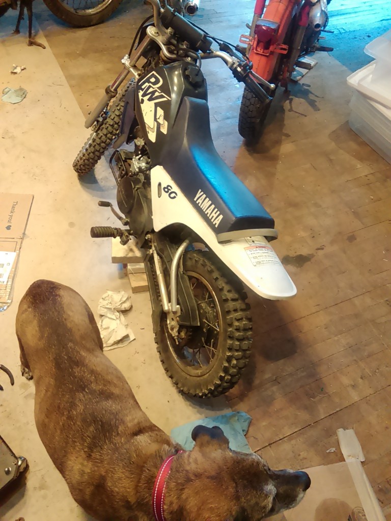 Back at the warehouse, my neighbor Heman brought over a bike for me to work on (for his kid to ride) as a little side project for my “spare time” 🙂 It’s a little Yamaha PW80 that had been sitting in one of his storage units for several years. The carb on this thing looked like it had been filled with sand: