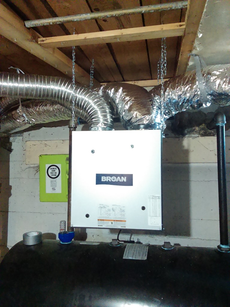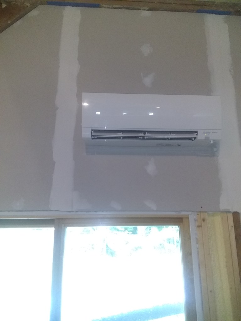 The big happening at the warehome this month was getting a heat pump installed. Our primary motivator here was that in addition to heat in winter it does AC for the summer months and with just one big open space it didn’t seem like it would be too difficult to cool the place with a single unit at the rear of the warehome. Vermont also offers some discounts for doing it.