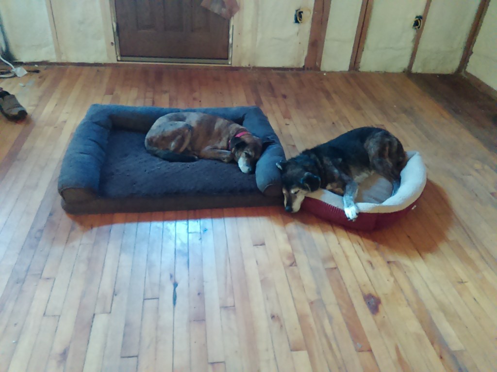 It is pretty obvious at this point that we’ll need to find a place to rent for the winter. We won’t have a kitchen or proper bathroom (shower) here for awhile yet. I’m afraid the pipes would be in danger of freezing at the camp if we were to stay there, and I wouldn’t be able to maneuver the driveway with my Civic in heavy snow anyway. I’m worried it’s going to be a challenge to find a six month rental with two dogs!