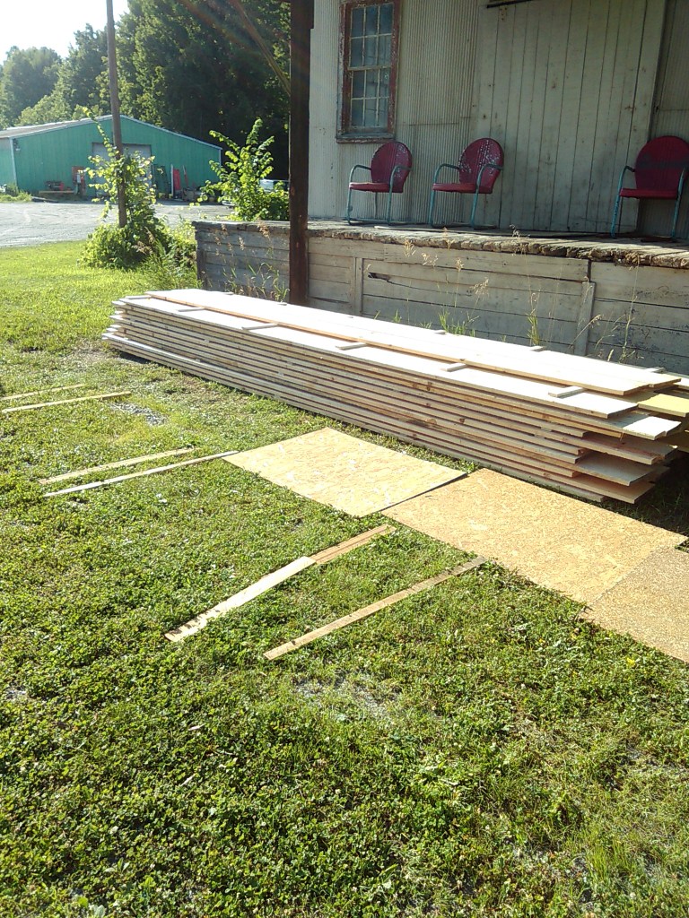 This was all of the old shiplap that was pulled out of the attic space and de-nailed for potential future reuse: