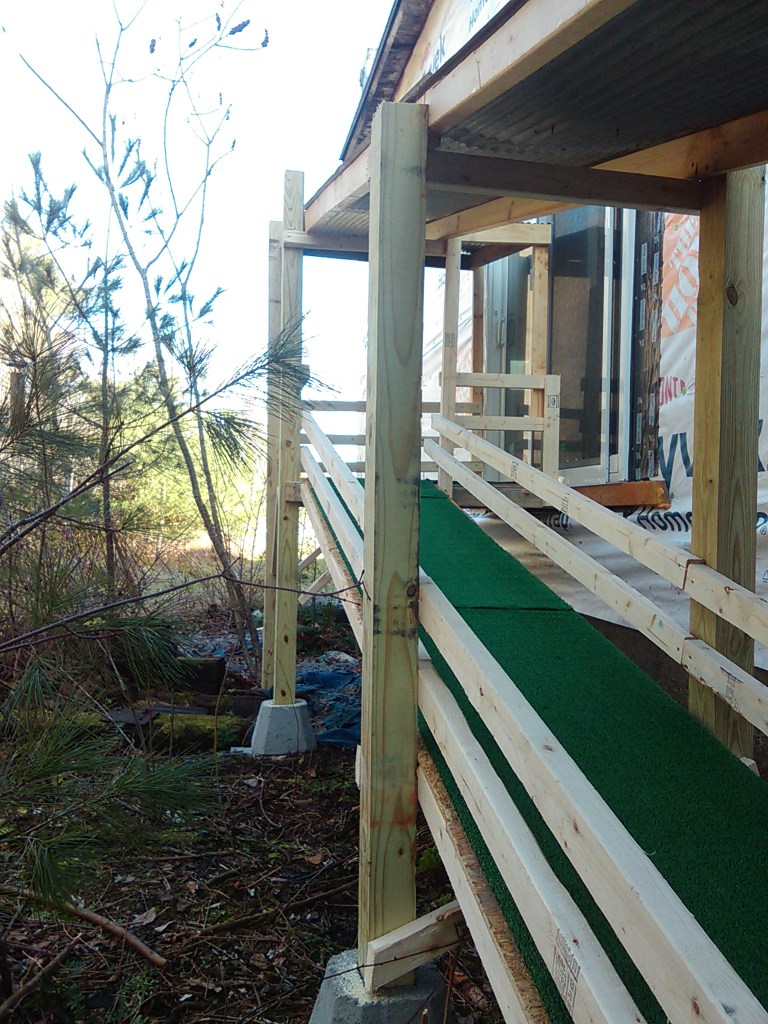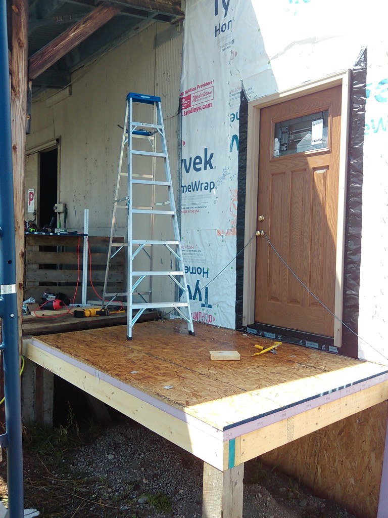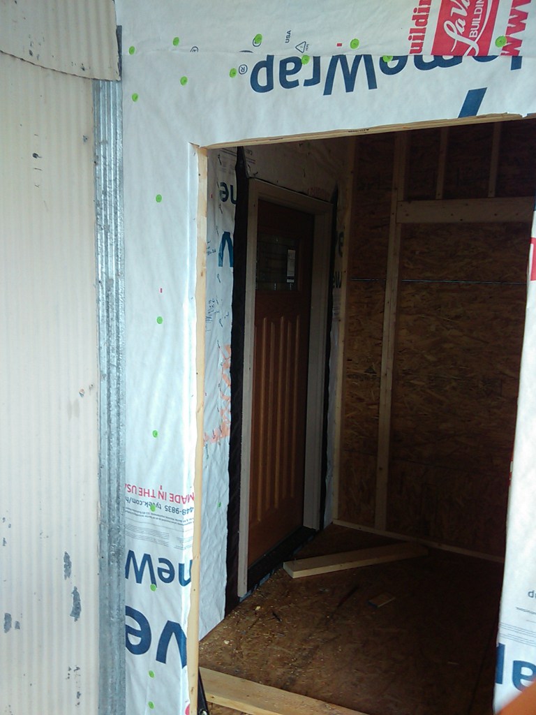 Got the front porch sided up and doors and windows installed-