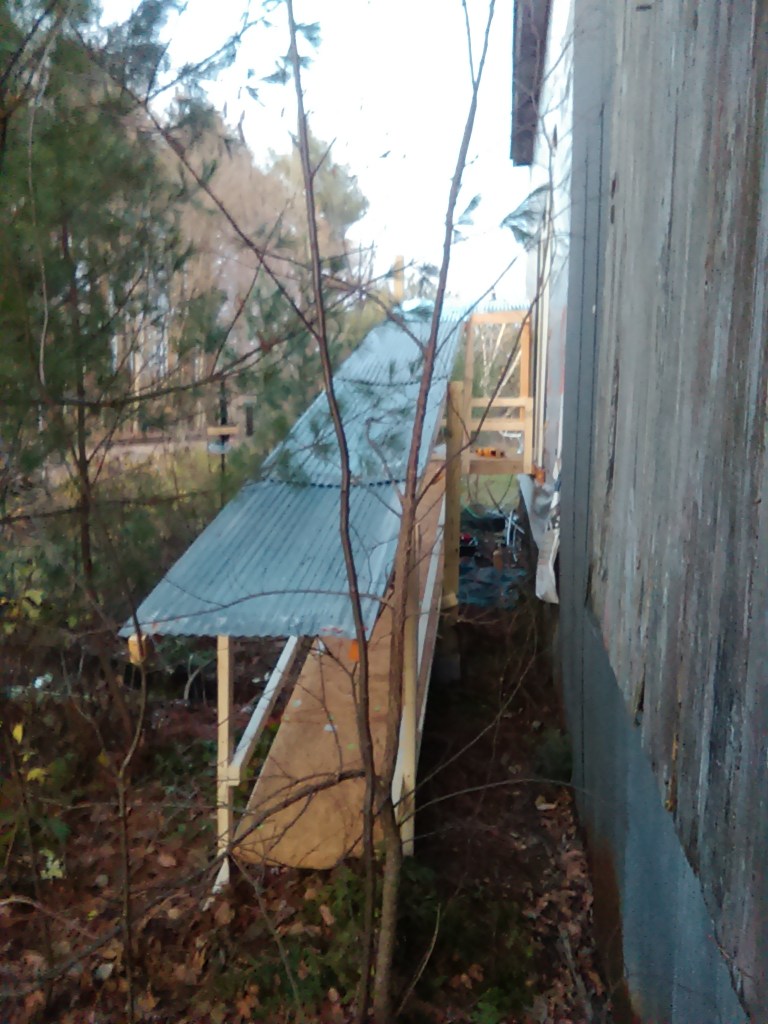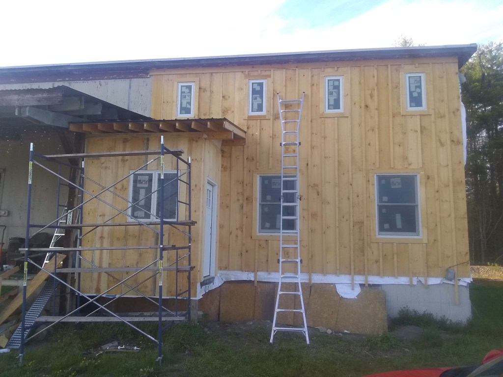 And then the next day we got a massive windstorm that tore open the front sheathing and started pulling down some on the back. I have a terrible fear of heights but I anger stapled that all back into place in the freezing rain, running up and down the ladder in the wind and ice rain trying to get it fixed-