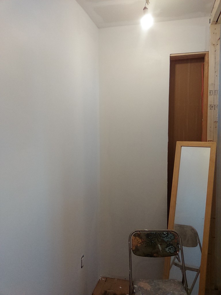 And now we’ve finally removed the temporary wall, and moved the sink and fridge over against the wall on the left will they will be located now and in the future when the kitchen is complete-