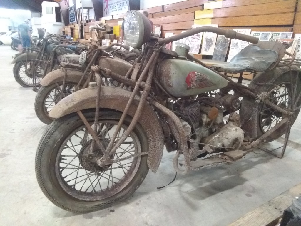 Went to view some OLD bikes- mostly Indians- at a pre-auction viewing. You think my bikes are old! Cool stuff but not really my thing. They had one small Honda that sold for way too much. Maybe I should put some of my bikes up for auction?