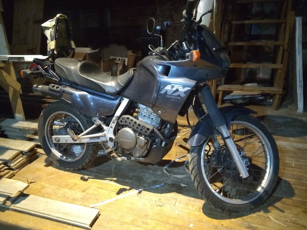 Bought this Honda NX650 Dominator from my dad. Great bike. One of the few that fits my tall sasquatch frame. Very comfortable for me and tons of power. The very first bike I learned to ride on was my dad’s old Honda NX650. Actually a different one than this. He sold it, had a diff bike, then got another. Now this one is mine. You don’t see a lot of these around. One year only bike, made in 1989. Way ahead of it’s time, this is “adventure bike” in an era where there wasn’t such a thing as adventure bikes-