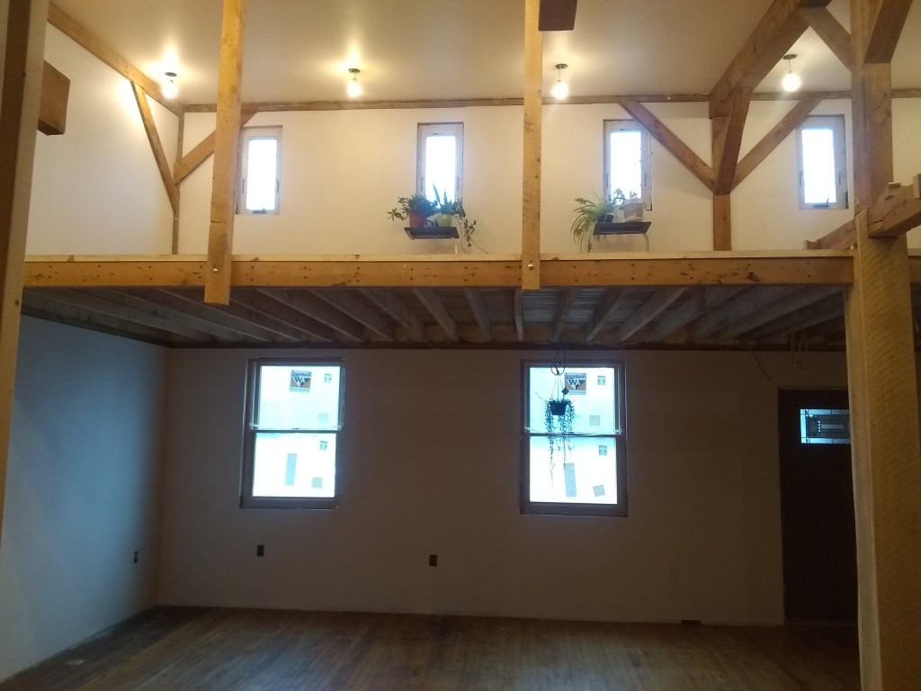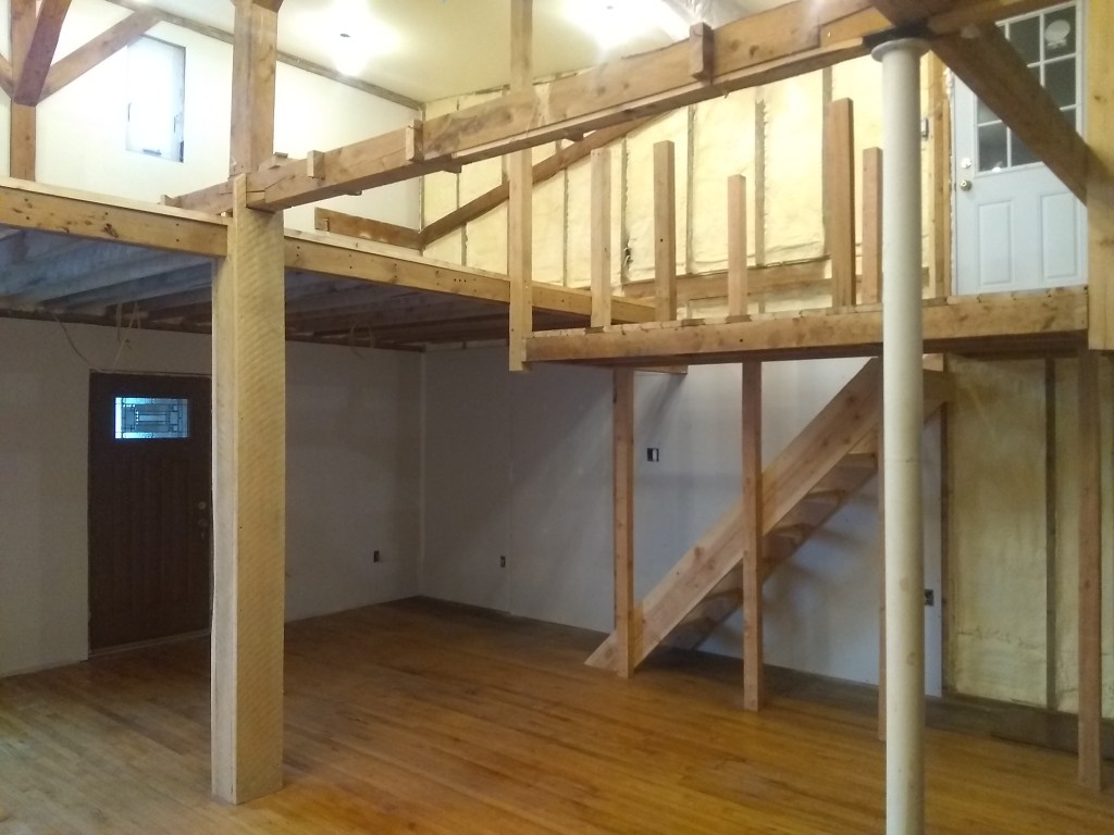 With all of that out of there we added a loft area in the highest section and some side stairs that lead up to the loft area of the warehouse and adds a door between that section and the house section.