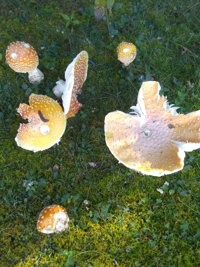 In other news, just found these freakishly large mushrooms growing the yard at camp. Big as my hand! I think something was snacking on them.